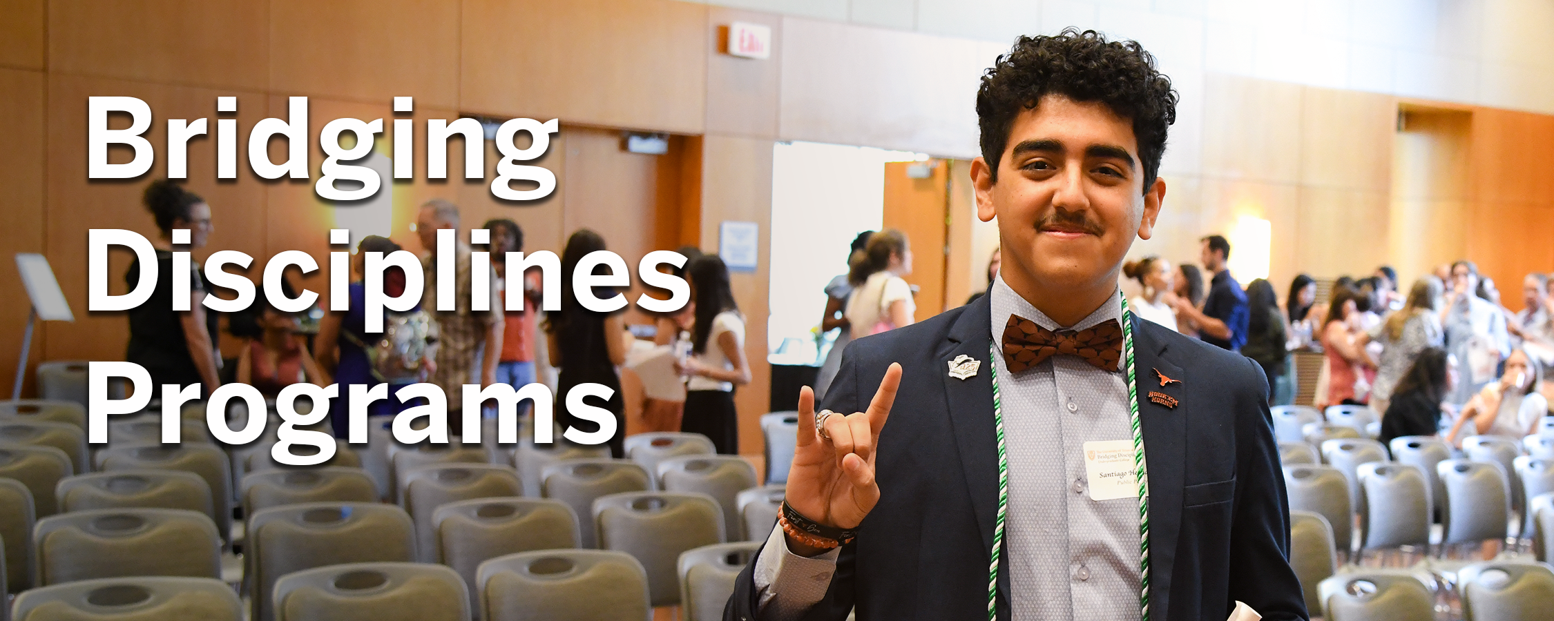 A student presents his research at the University of Texas.