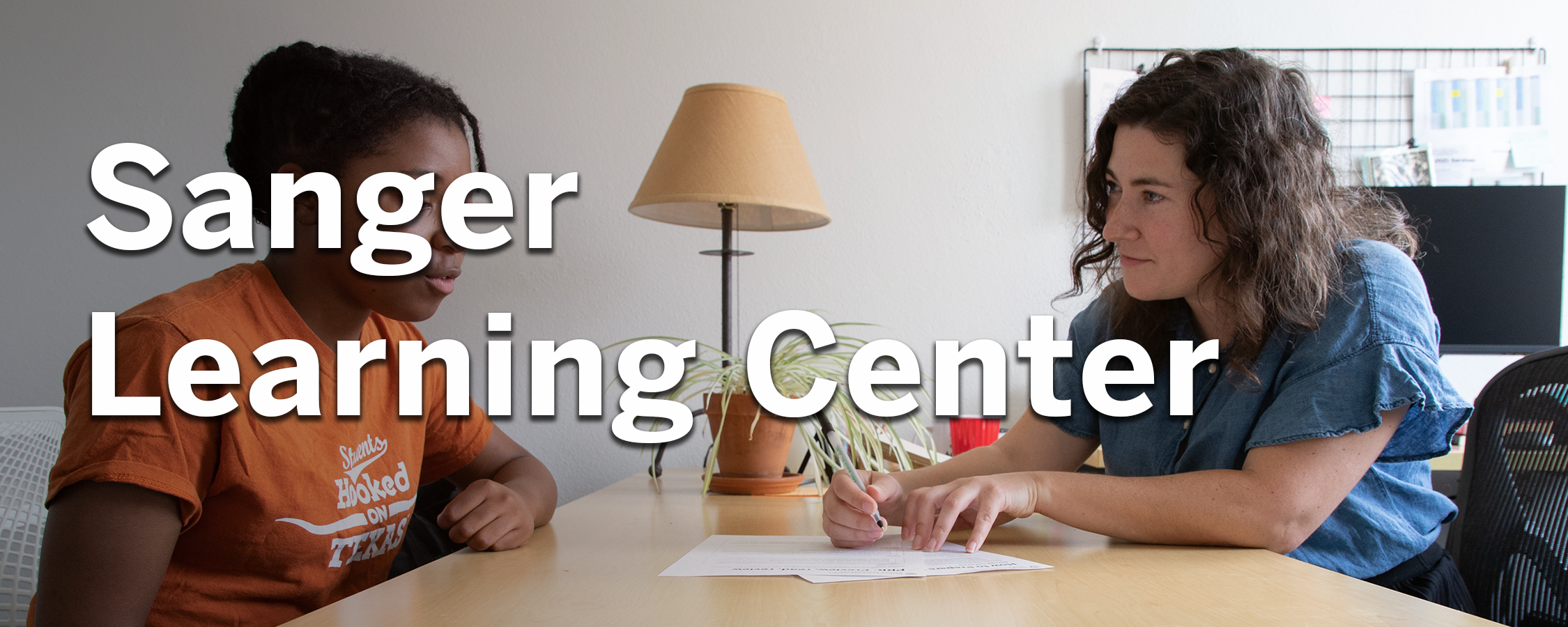 A student meets with a tutor at the Sanger Learning Center.